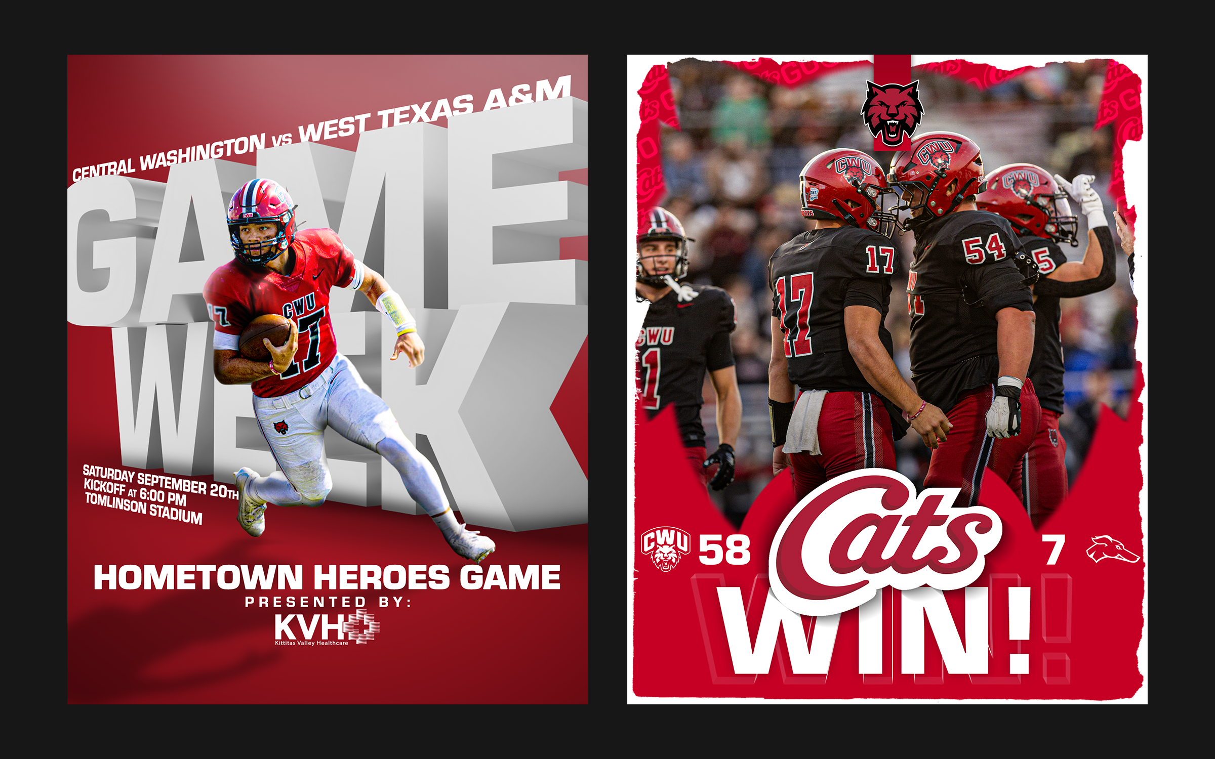 This is the kind of work I love—fast-paced, high-energy, and happening in real time. Getting to help shape the weekly story of Wildcat Football, game after game, pushed me to level up my design style and reminded me exactly why I want to do this for a living.