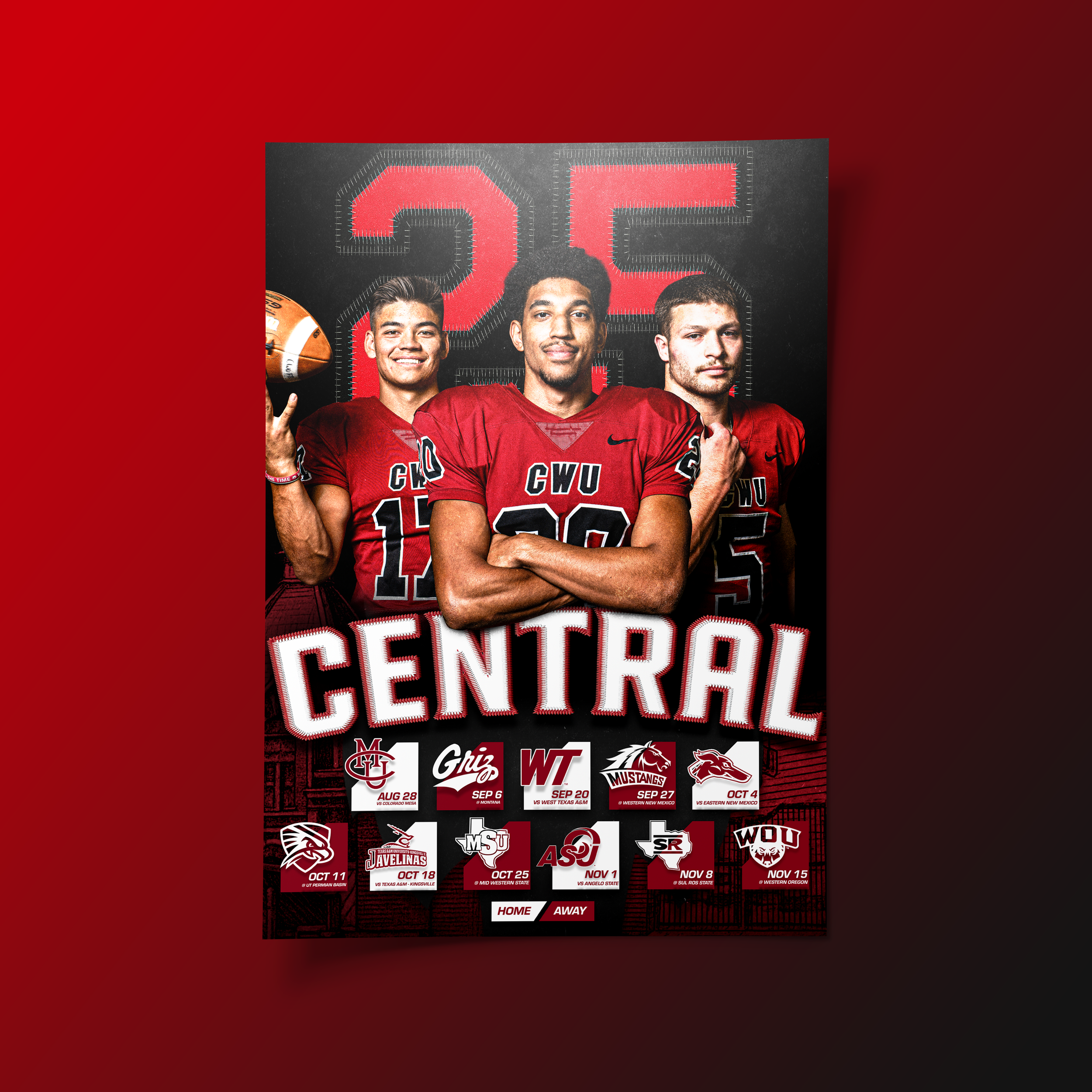 I landed this internship by cold-emailing the head of External Affairs at CWU Athletics, which somehow turned into one of the coolest opportunities I’ve had so far. I spent the season creating a constant stream of visuals for CWU Football—designing credentials, custom nameplates for players, pre- and post-game graphics, and social content that had to move fast. I was even editing photos at halftime to keep the feed alive while the game was still happening.
