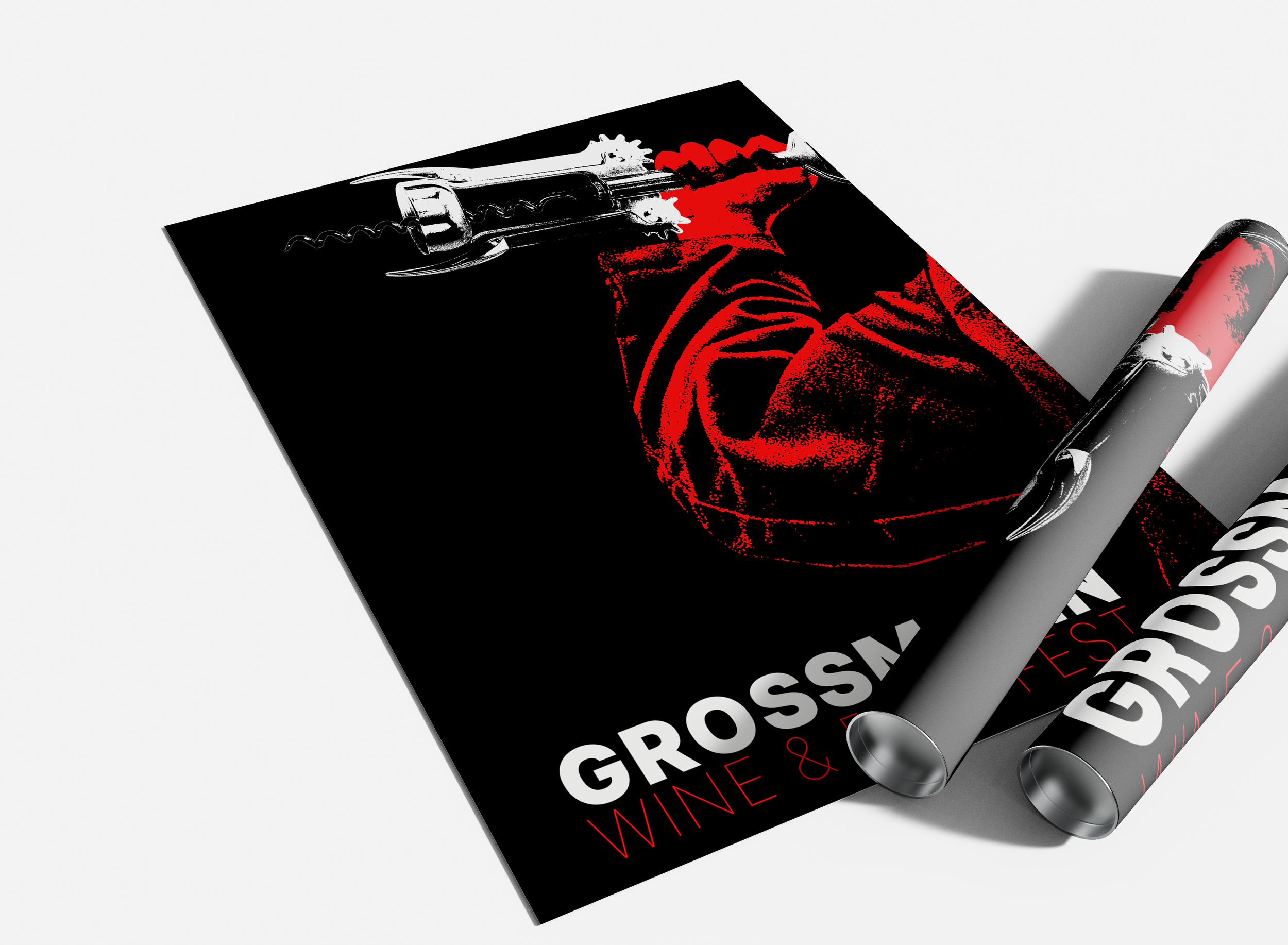 For this project, I designed the full visual identity for the Grossmann Wine & Film Fest, a horror-themed mix of film and wine—because why not make things a little darker? I leaned into gritty textures, sharp contrasts, and bold red-and-black visuals to channel a cult-classic horror feel that’s equal parts eerie and stylish. From posters to merch and badges, everything was built to feel connected and unmistakably Grossmann. This project was genuinely one of my favorites and gave me a lot of room to push my style and have fun with horror-inspired design.