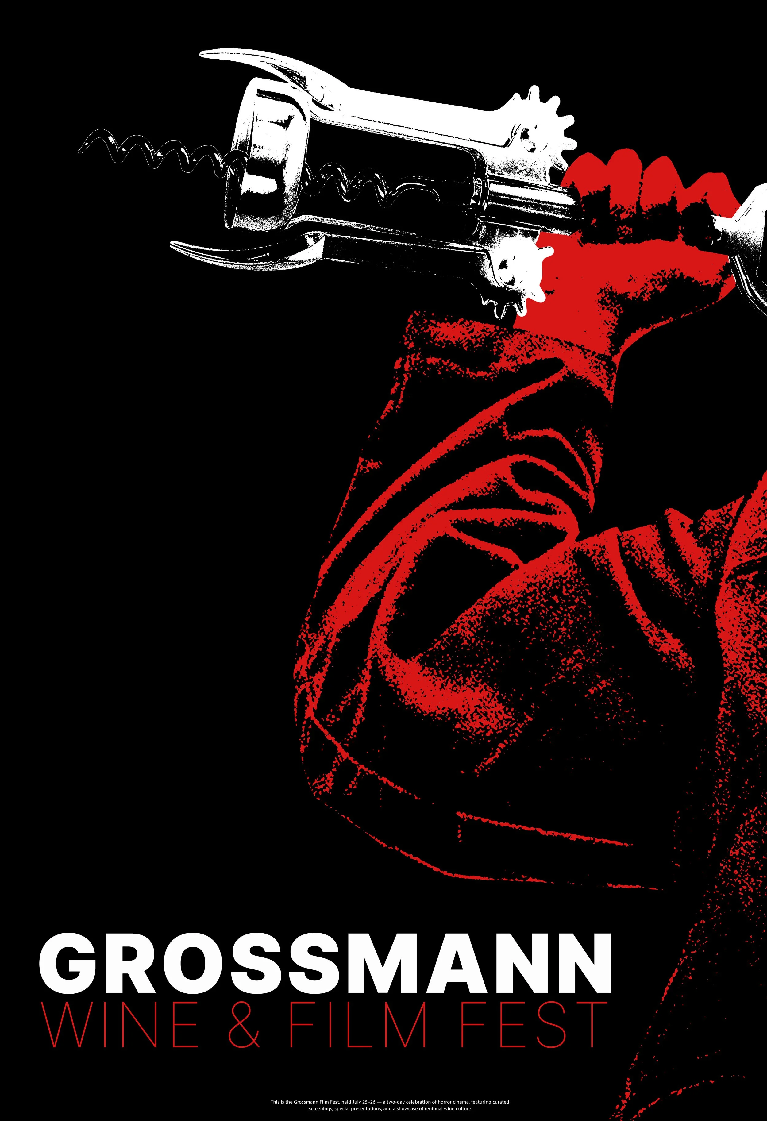 For this project, I designed the full visual identity for the Grossmann Wine & Film Festival—a horror-themed celebration of film and wine, because why not make things a little darker? The concept alone gave me a strong creative direction: blending the elegance of wine culture with the raw, unsettling energy of cult horror cinema.